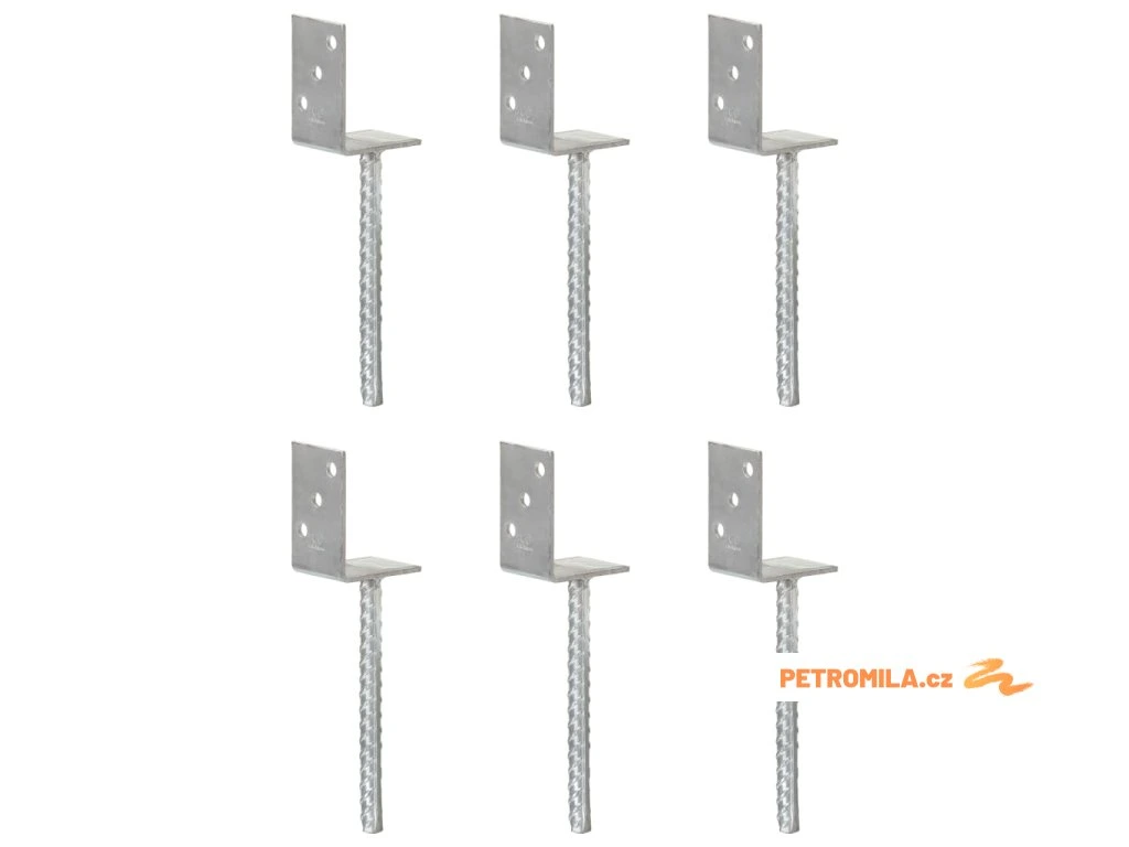 Plotové kotvy 6 ks stříbrné 8 x 6 x 30 cm pozinkovaná ocel