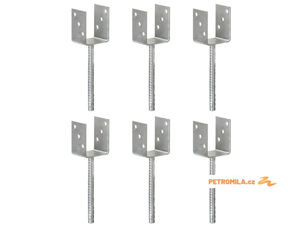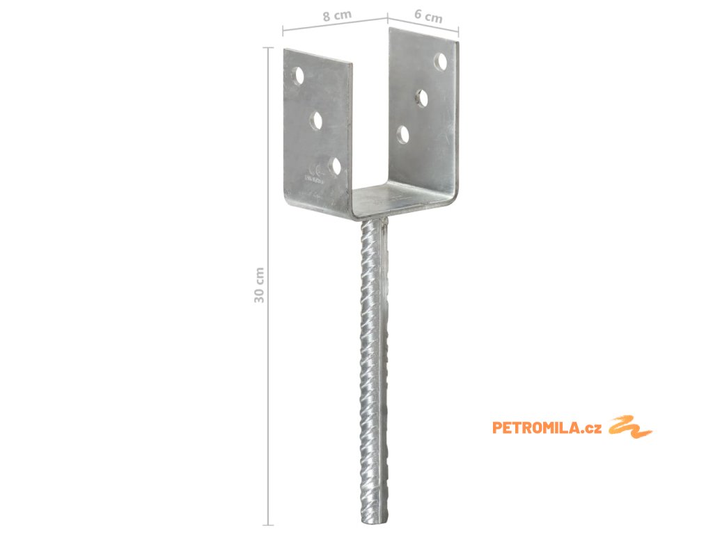Plotové kotvy 6 ks stříbrné 8 x 6 x 30 cm pozinkovaná ocel