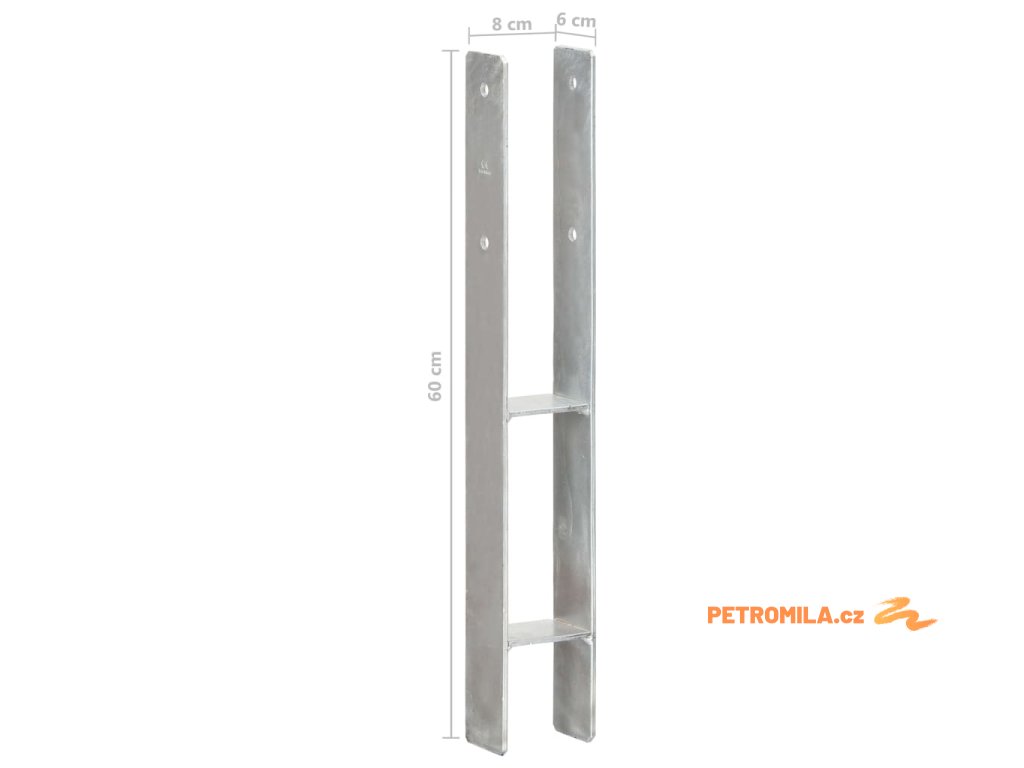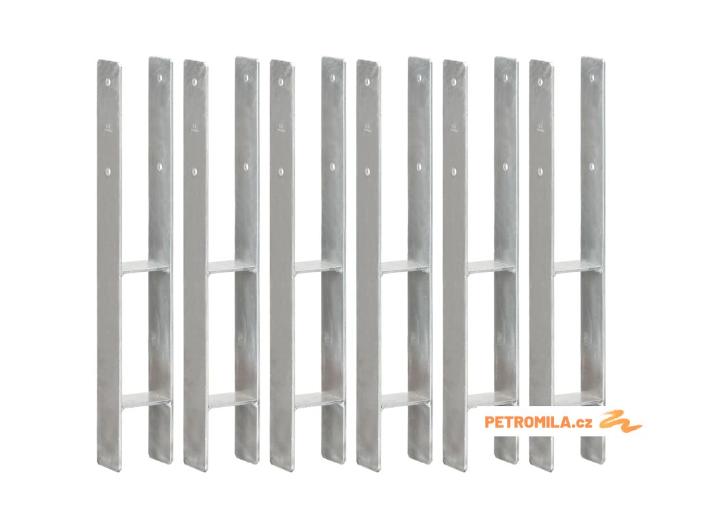Plotové kotvy 6 ks stříbrné 8 x 6 x 60 cm pozinkovaná ocel