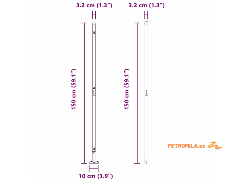 - Celkové rozměry: 3.2 x 3.2 x 150 cm (D x Š x V)