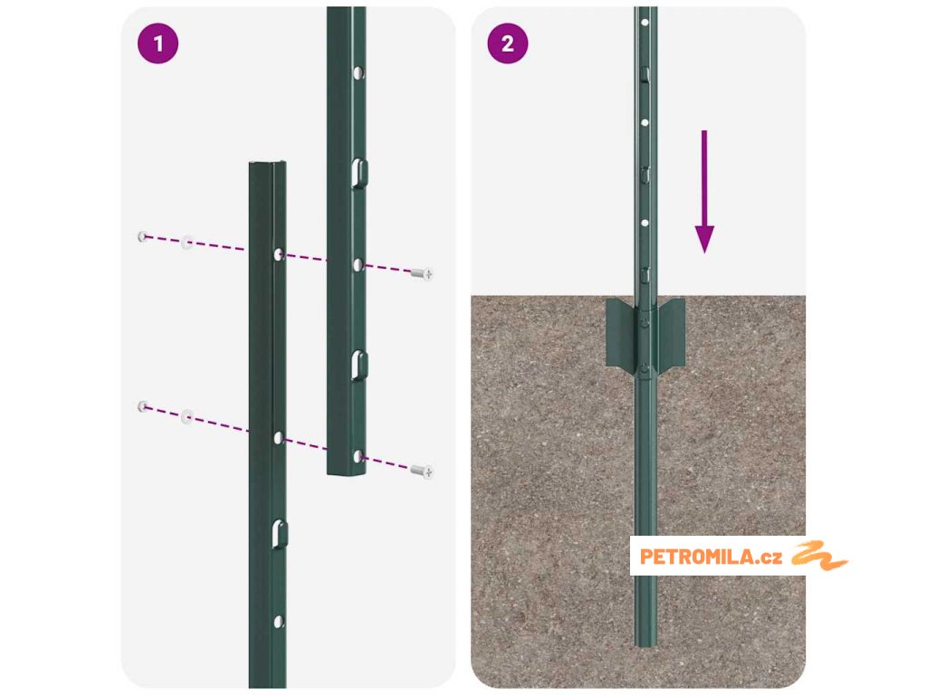 - Materiál Ocel: Vyrobený z pevné oceli, tento sloupek plotu zajišťuje skvělou podporu a vydrží dlouho. Dobře snáší počasí, takže v zahradě se mu daří.