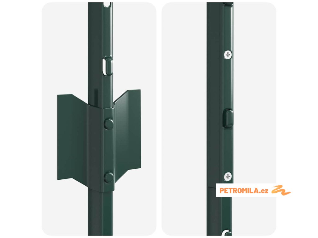 - Materiál Ocel: Vyrobený z pevné oceli, tento sloupek plotu zajišťuje skvělou podporu a vydrží dlouho. Dobře snáší počasí, takže v zahradě se mu daří.