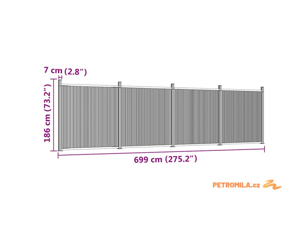 Plotová sada WPC 4 čtvercové + 1 šikmý díl 792 x 186 cm hnědá