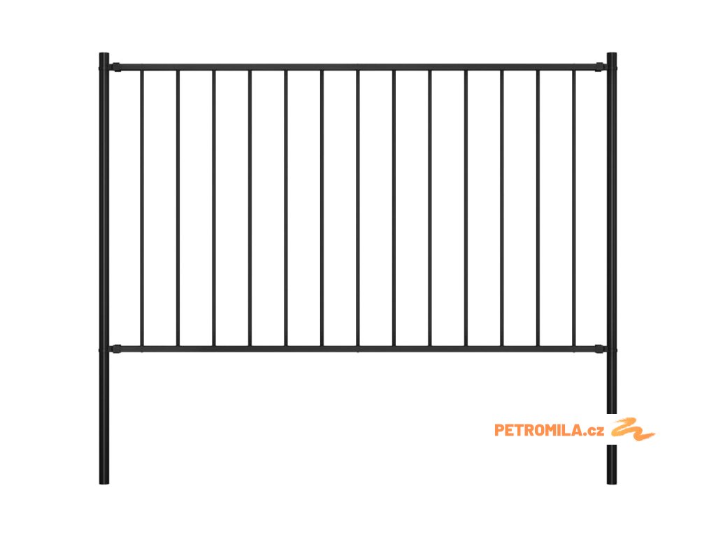 Plotový dílec se sloupky ocel práškový lak 1,7 x 1,25 m černý