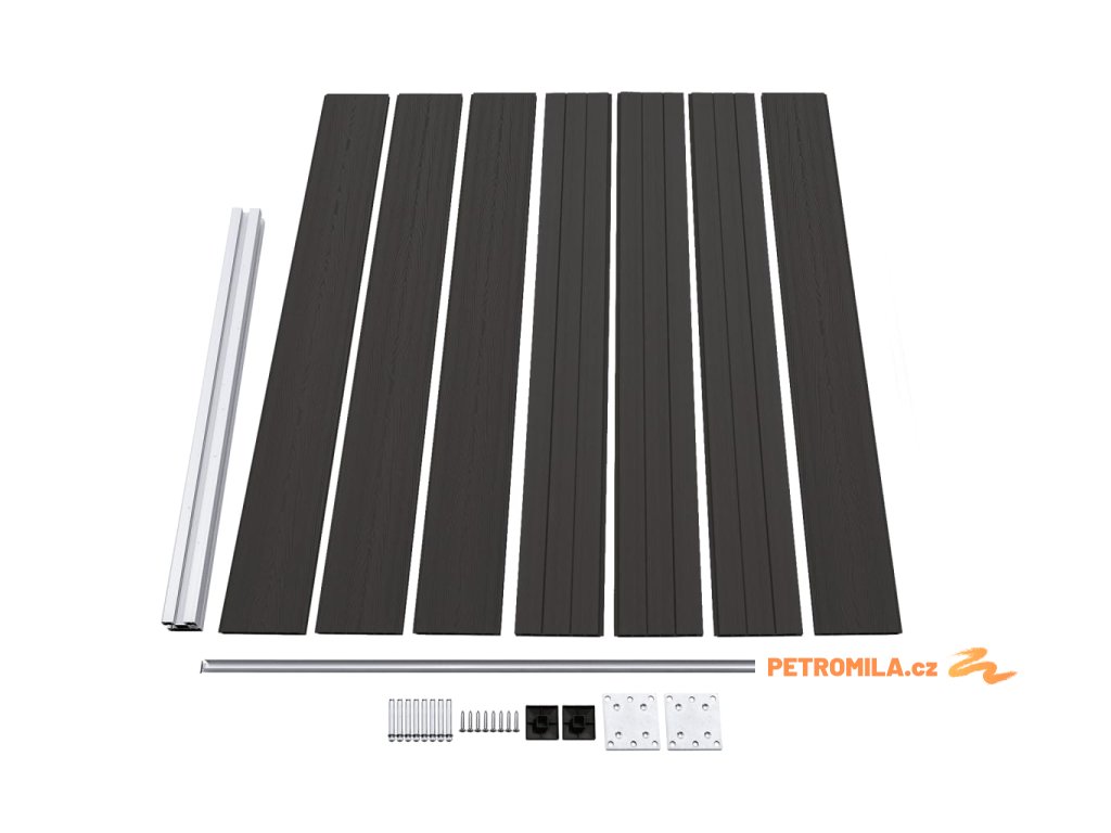- Materiál: WPC (dřevoplast), hliník, ocel