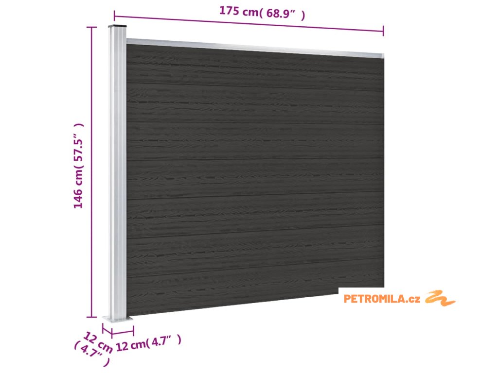 Plotový dílec WPC 175 x 146 cm černý