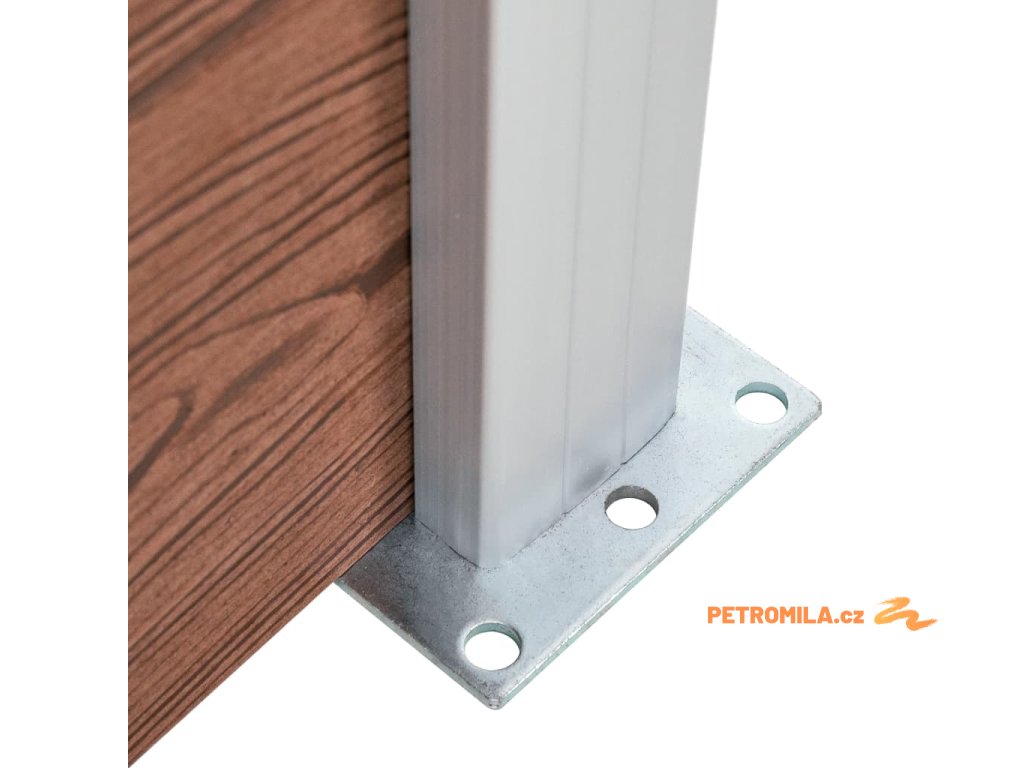 - Materiál: WPC (dřevoplast), hliník, ocel