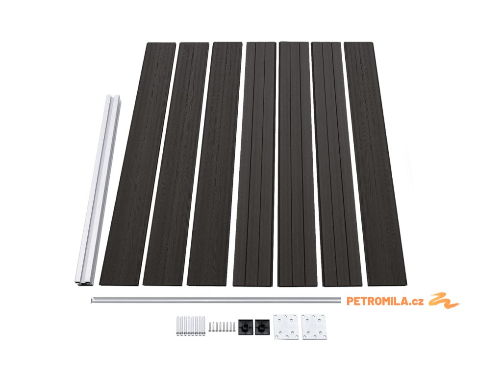 - Materiál: WPC (dřevoplast), hliník, ocel
