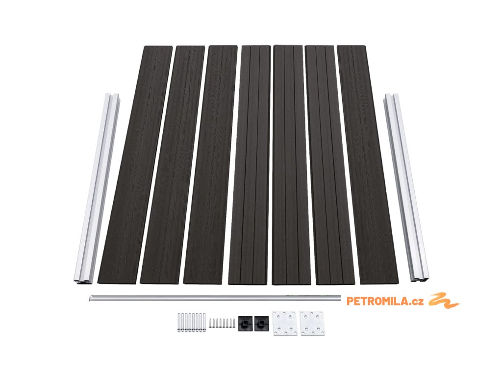 - Materiál: WPC (dřevoplast), hliník, ocel