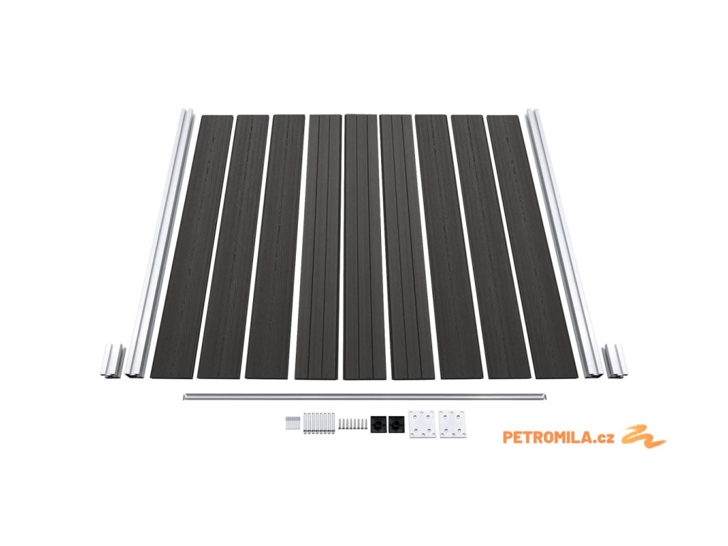- Materiál: WPC (dřevoplast), hliník, ocel