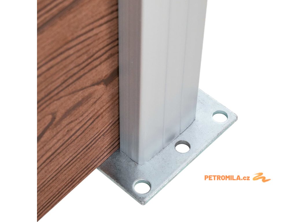 - Materiál: WPC (dřevoplastový kompozit), hliník, ocel