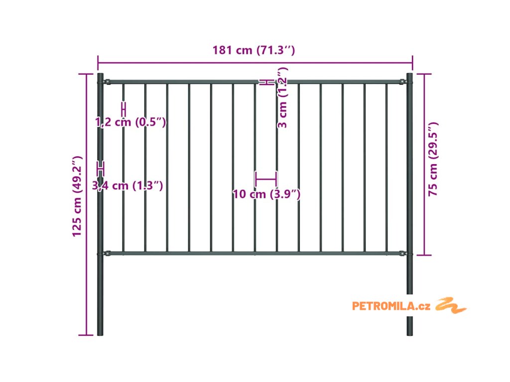 Plotový panel se sloupky, práškově lakovaná ocel 1,81 x 0,75 m, antracitový