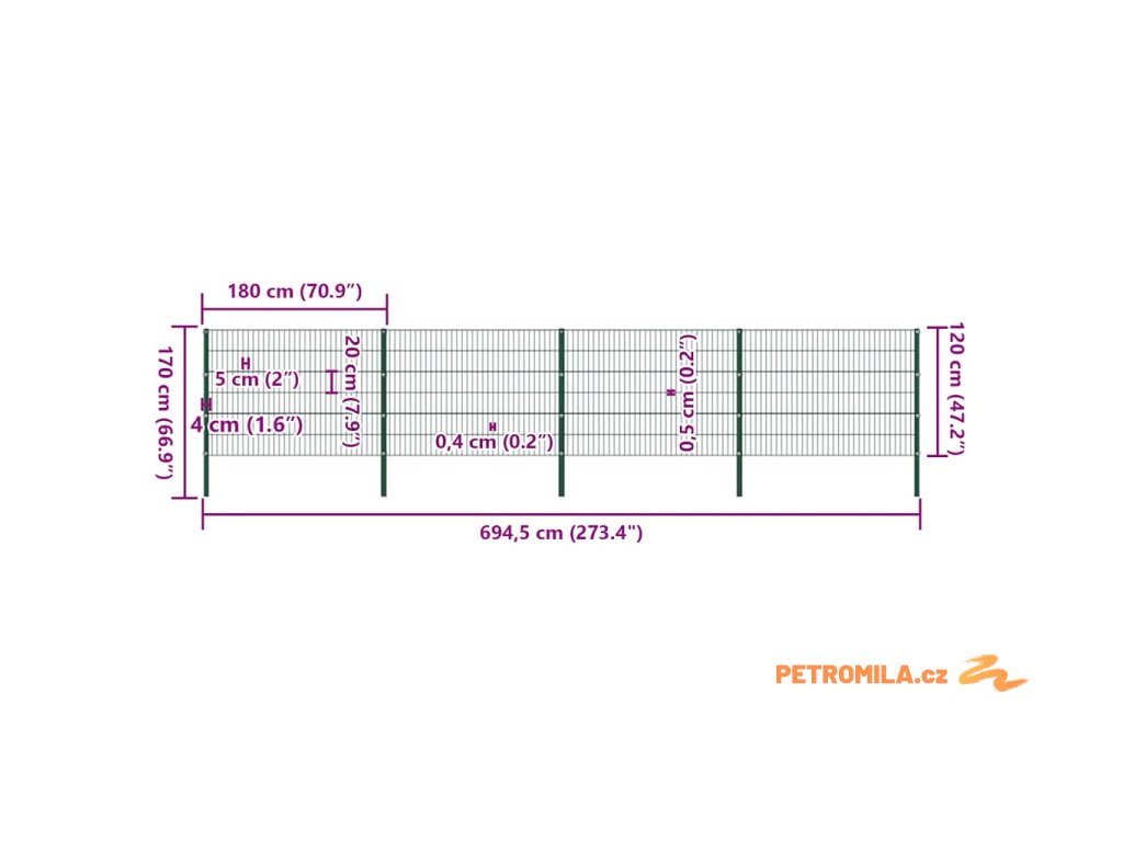 Plotový panel se sloupky železný 694,5 x 120 cm zelený