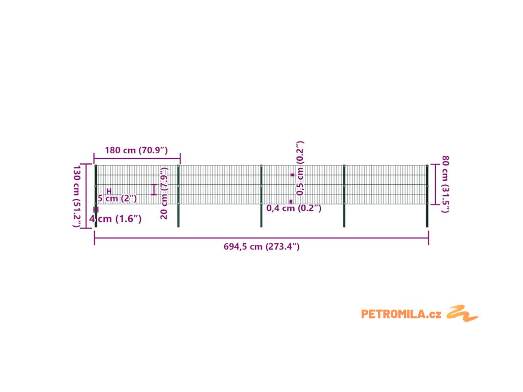 Plotový panel se sloupky železný 694,5 x 80 cm zelený