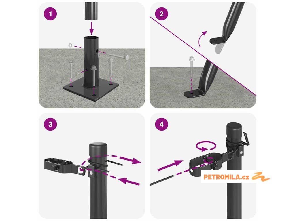 - Přiložené komponenty: Montáž sloupku je jednoduchá, protože potřebujete minimální počet dílů. Stačí přesně vyrobené komponenty a kladivo, abyste sloupek zasadili do země. Skvěle se spojí s bránami a ploty, a poskytuje stabilitu a funkčnost.