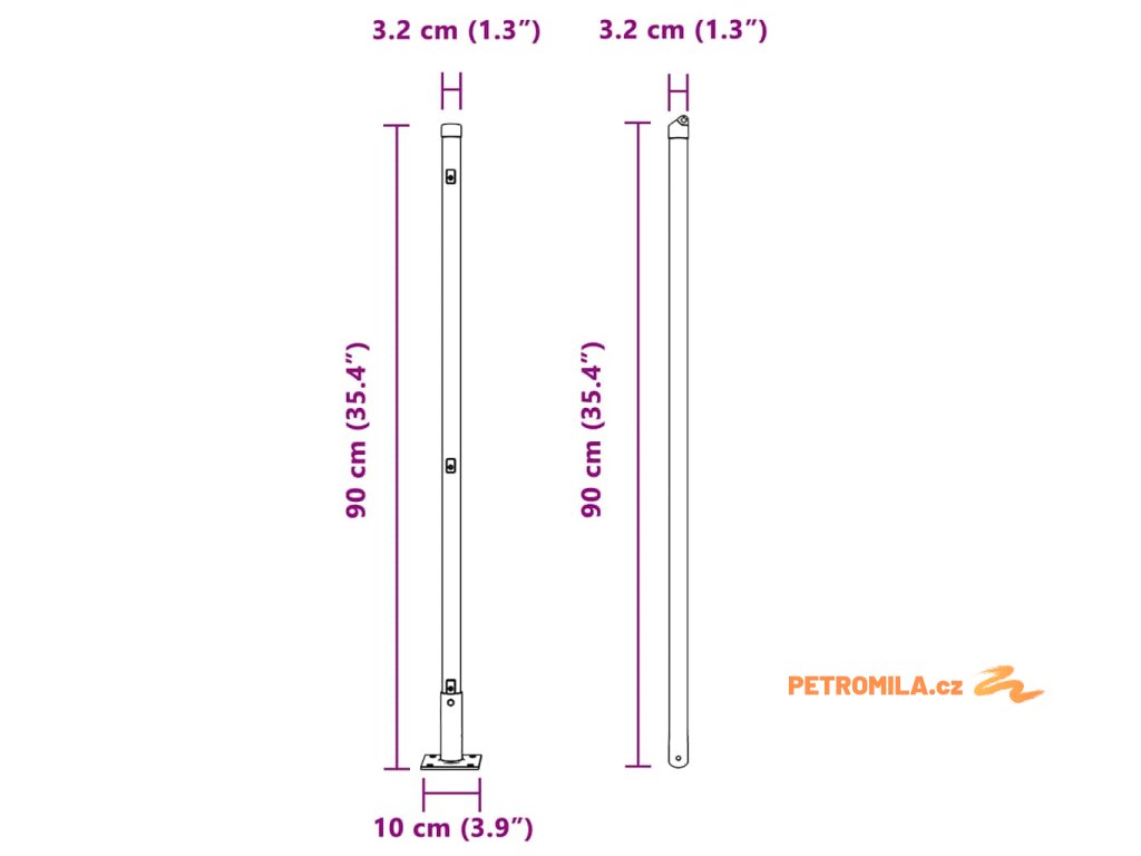 - Celkové rozměry: 3,2 x 3,2 x 90 cm (D x Š x V)