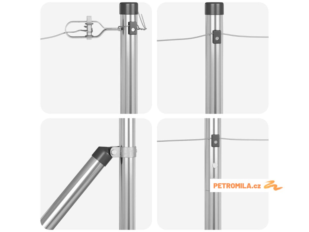 - Robustní materiál: Vyrobený z kvalitní oceli, sloupek je navržený tak, aby vydržel. Ocel je odolná proti opotřebení a vypadá skvěle i po dlouhém používání venku.