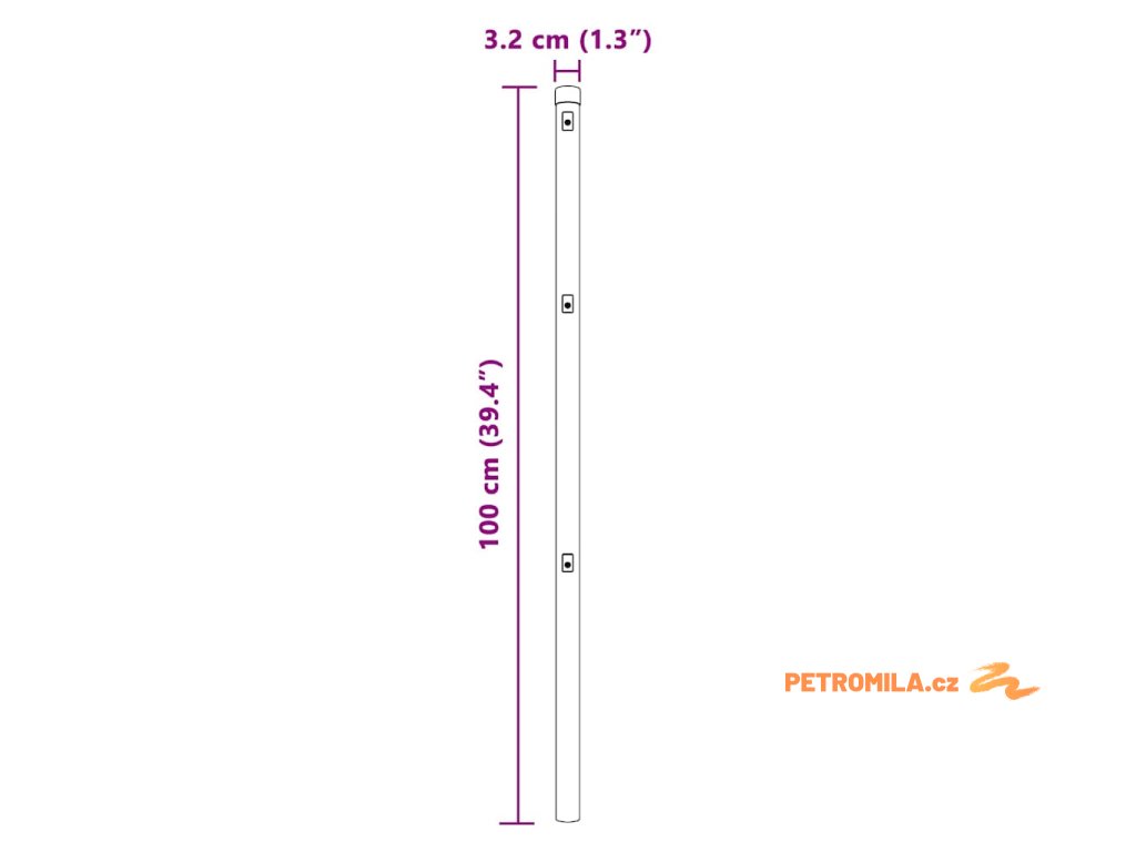 - Celkové rozměry: 3,2 x 3,2 x 100 cm (D x Š x V)