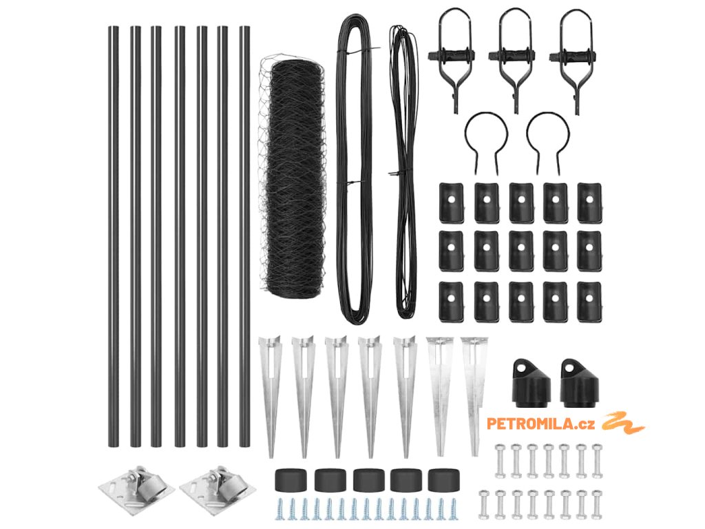 Plotový sloupek. Šedá 10 x 0,6 m (50 mm síť) Ocel a PVC