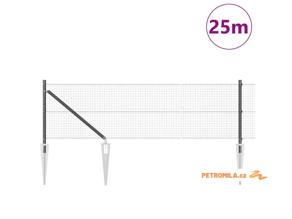 Plotový sloupek. Šedá 25 x 0,4 m (25 x 25 mm síť) Ocel a PVC