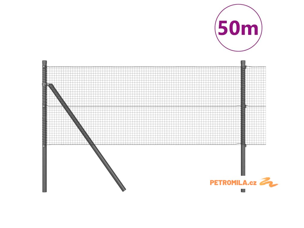 Plotový sloupek. Šedá 50 x 0,5 m (16 x 16 mm síť) Ocel a PVC