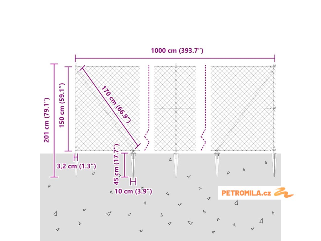 - Celkové rozměry: 1000 x 3,2 x 150 cm (D x Š x V)