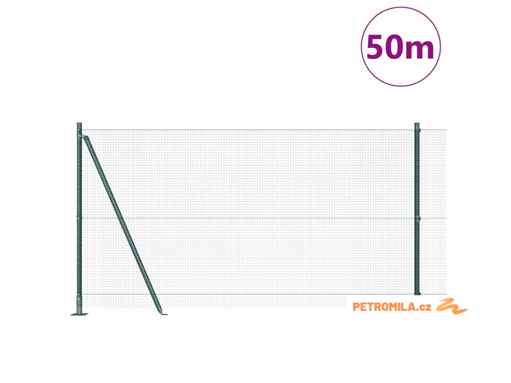 Plotový sloupek. Zelená 50 x 1,2 m (16 x 16 mm síť) Ocel a PVC