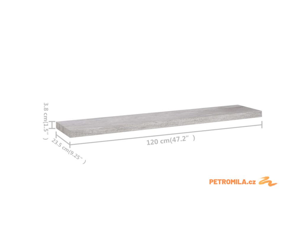 Plovoucí nástěnná police betonově šedá 120 x 23,5 x 3,8 cm MDF
