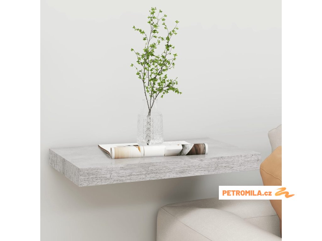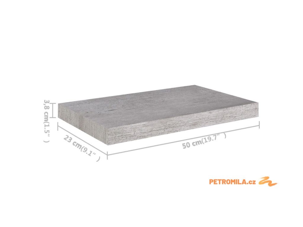 Plovoucí nástěnná police betonově šedá 50 x 23 x 3,8 cm MDF