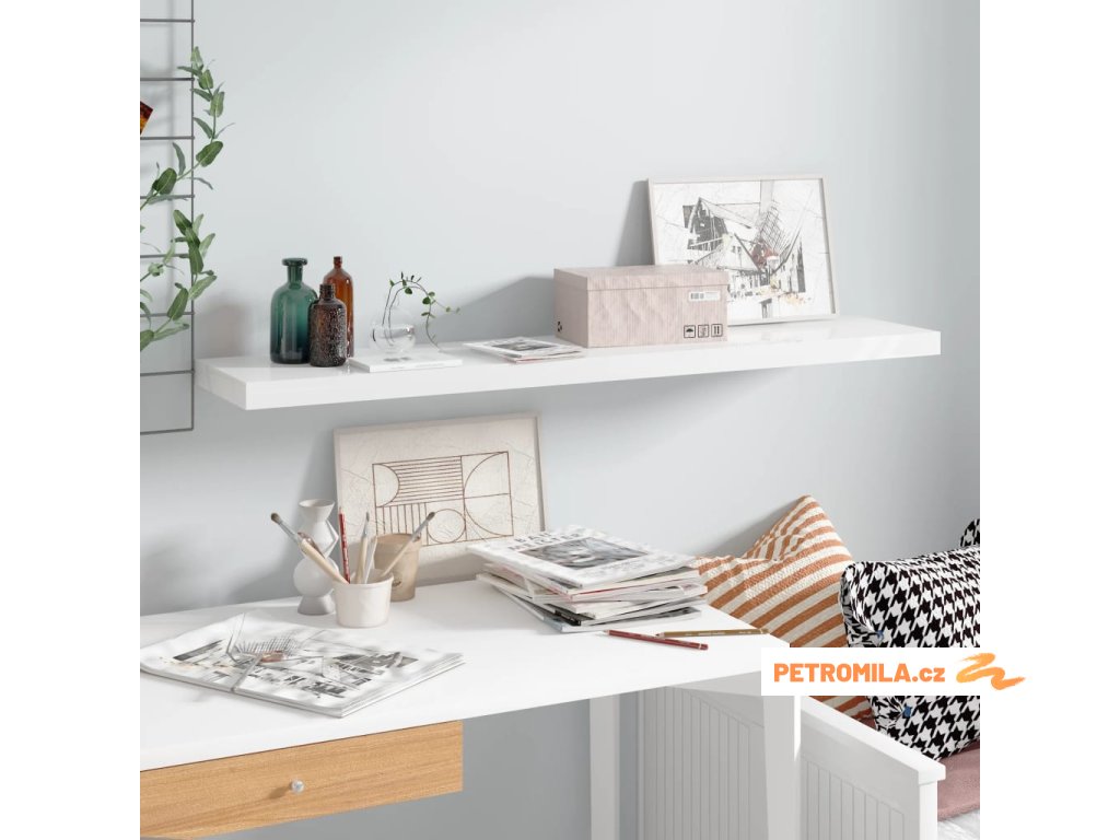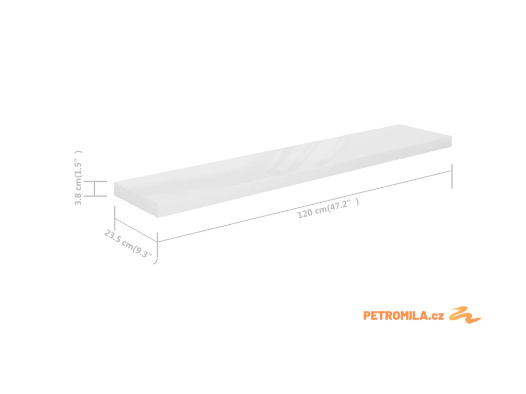 Plovoucí nástěnná police bílá vysoký lesk 120x23,5x3,8 cm MDF