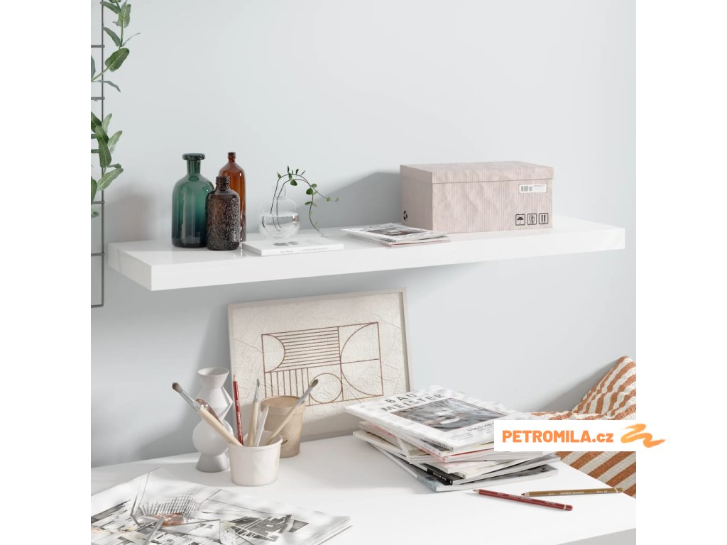 Plovoucí nástěnná police bílá vysoký lesk 90x23,5x3,8 cm MDF