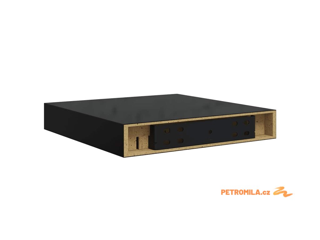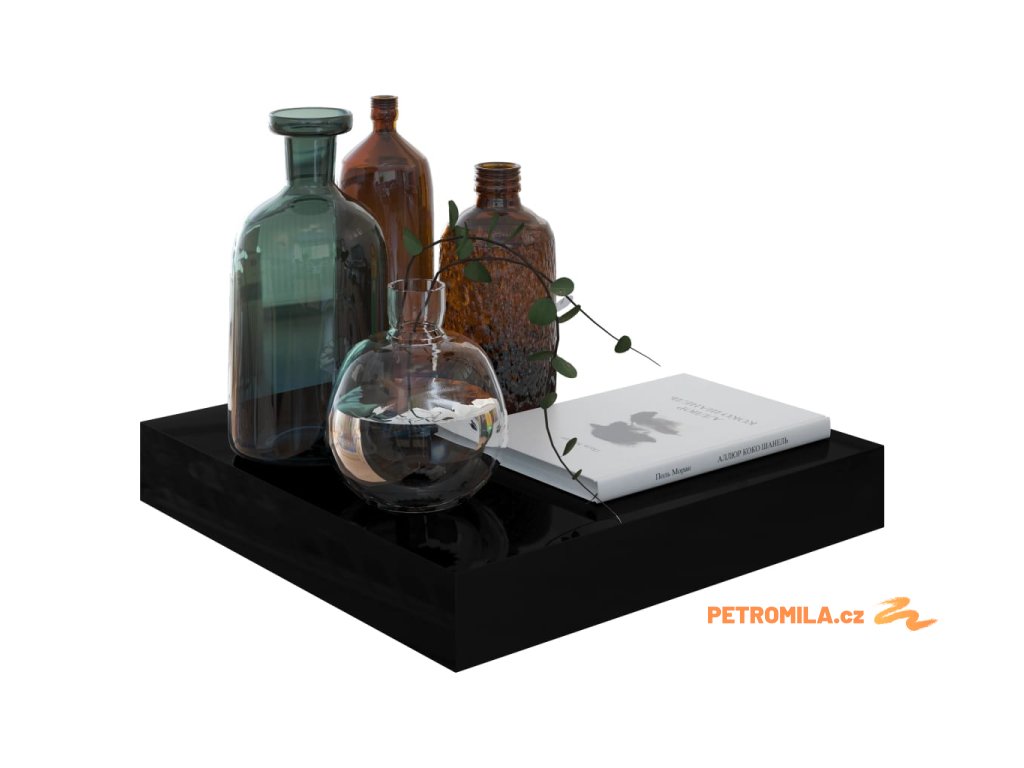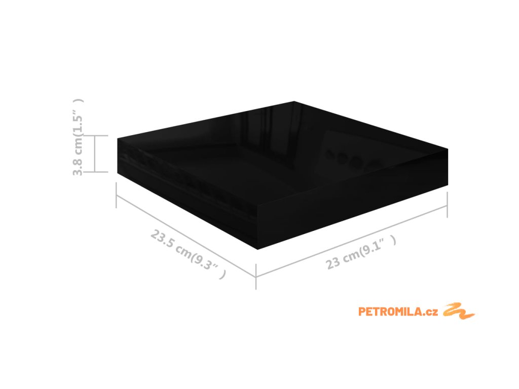 Plovoucí nástěnná police černá vysoký lesk 23x23,5x3,8 cm MDF