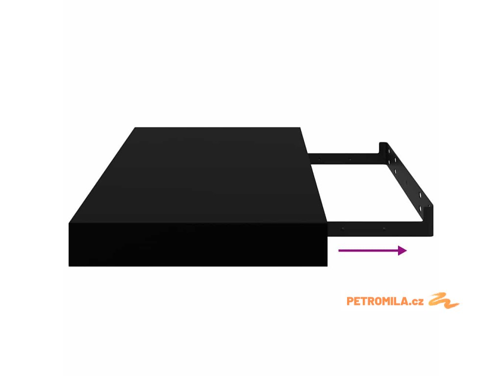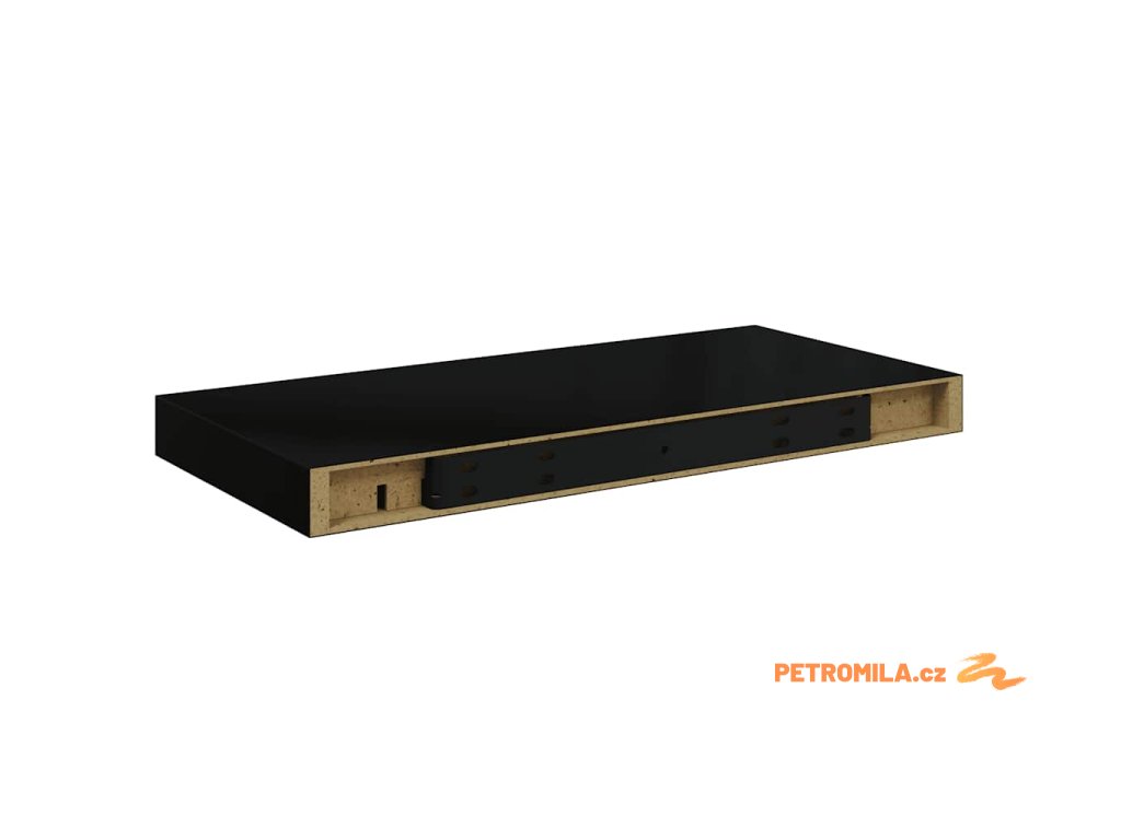 Plovoucí nástěnná police černá vysoký lesk 50 x 23 x 3,8 cm MDF