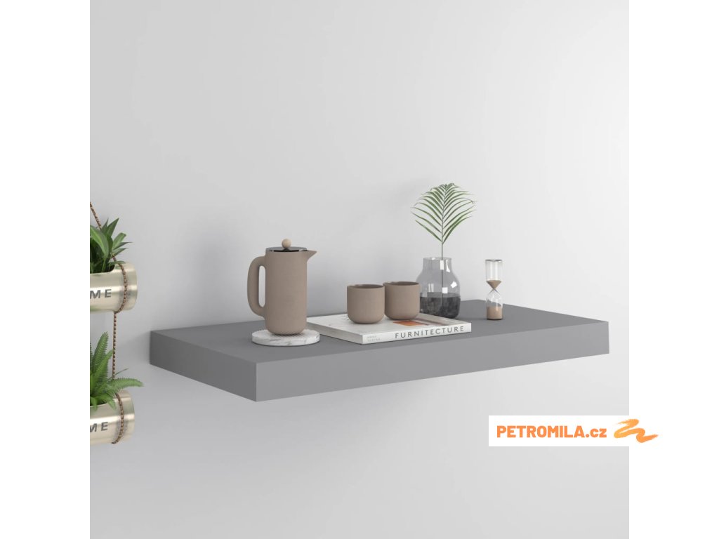 Plovoucí nástěnná police šedá 50 x 23 x 3,8 cm MDF