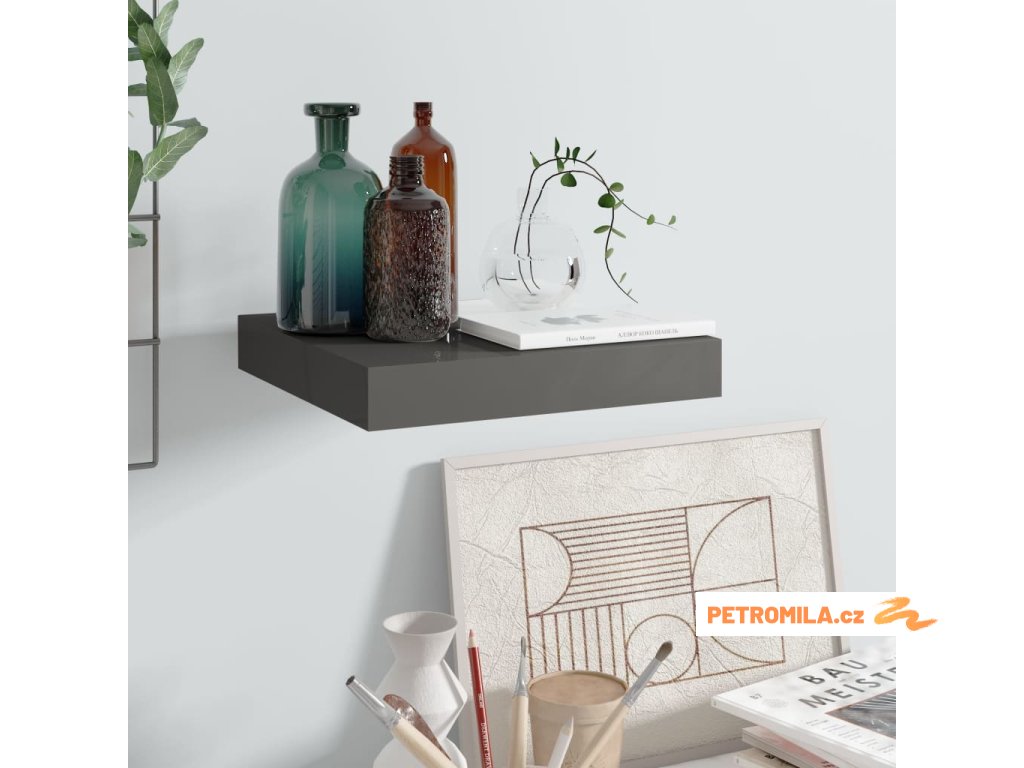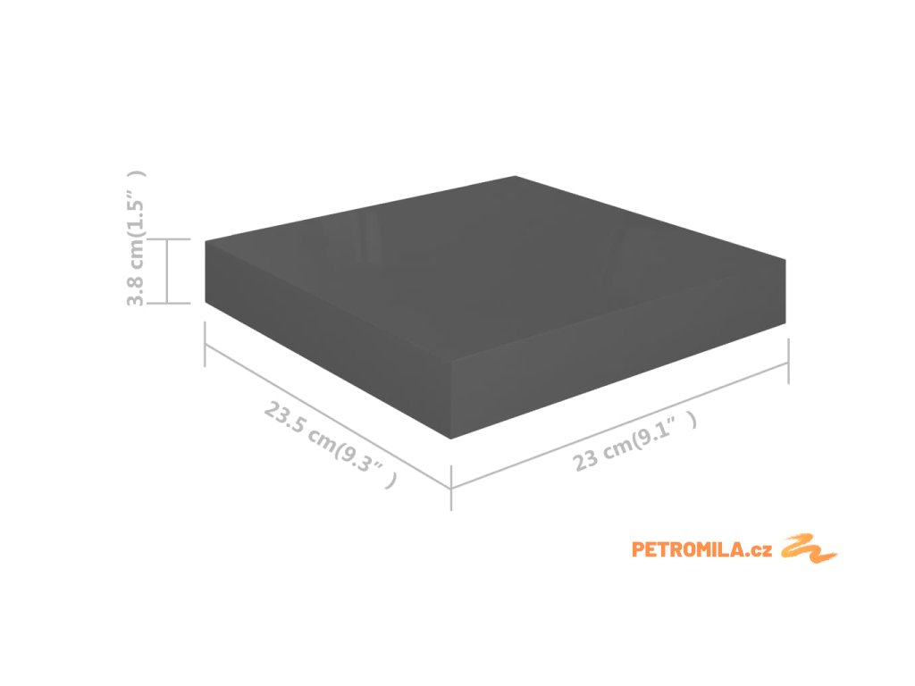 Plovoucí nástěnná police šedá vysoký lesk 23x23,5x3,8 cm MDF