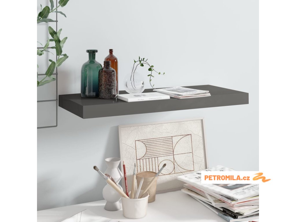 Plovoucí nástěnná police šedá vysoký lesk 60x23,5x3,8 cm MDF