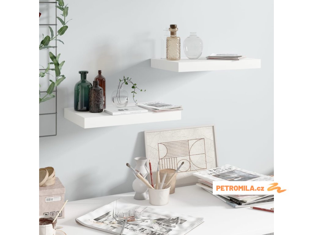Plovoucí nástěnné police 2 ks bílé vysoký lesk 40x23x3,8 cm MDF