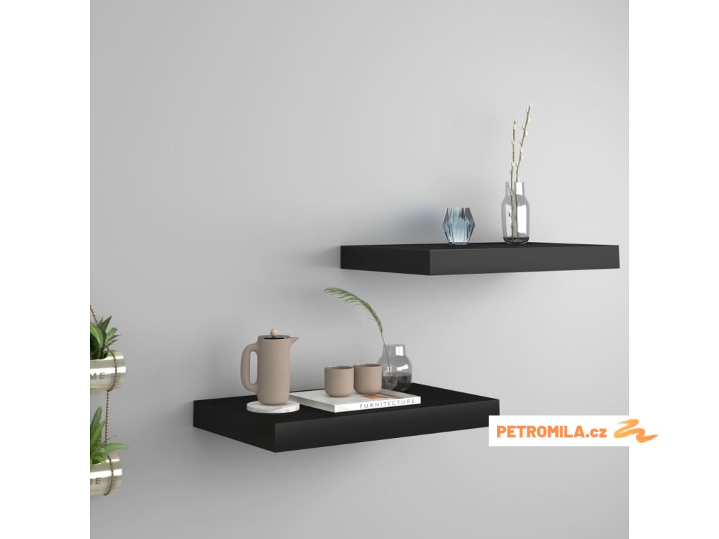 Plovoucí nástěnné police 2 ks černé 40 x 23 x 3,8 cm MDF