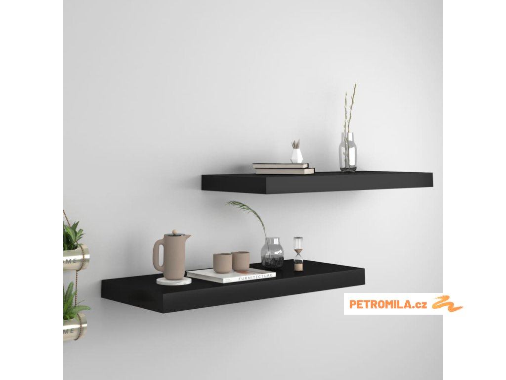 Plovoucí nástěnné police 2 ks černé 60 x 23,5 x 3,8 cm MDF