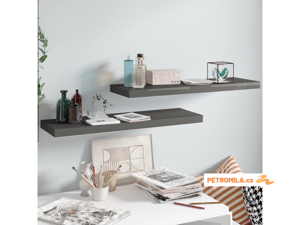 Plovoucí nástěnné police 2 ks lesklé šedé 80x23,5x3,8 cm MDF