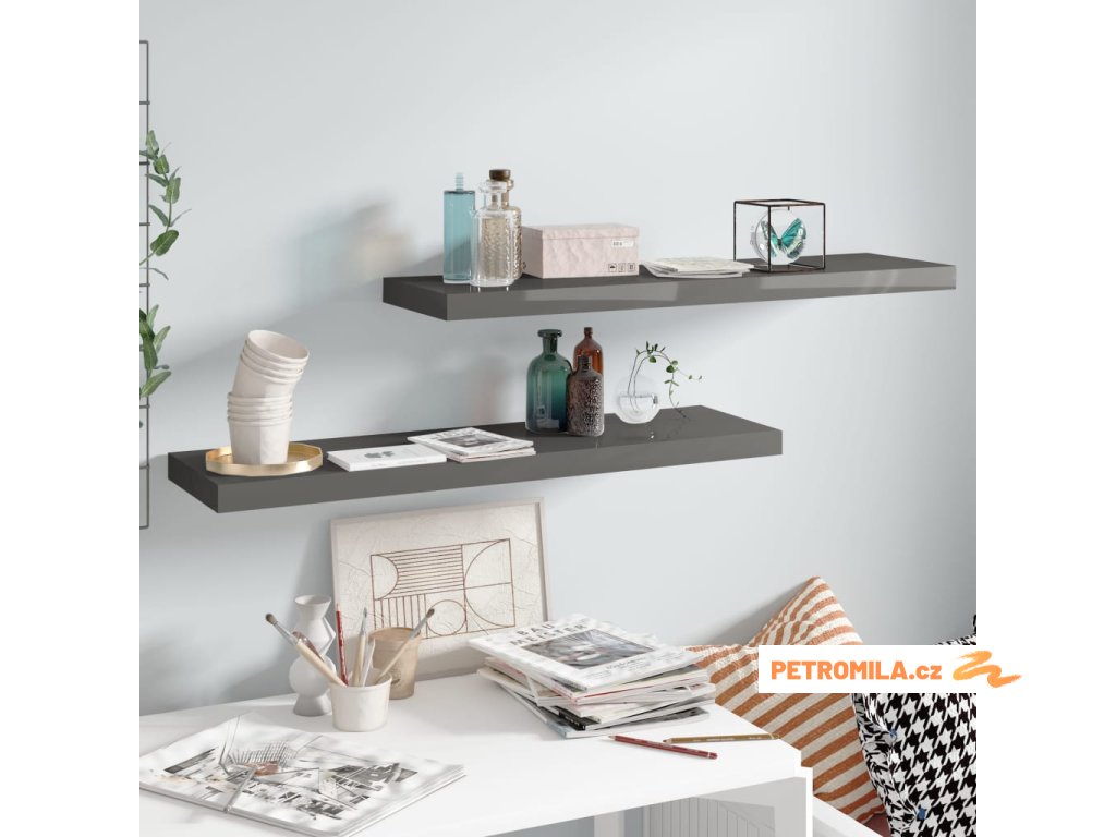 Plovoucí nástěnné police 2 ks lesklé šedé 90x23,5x3,8 cm MDF