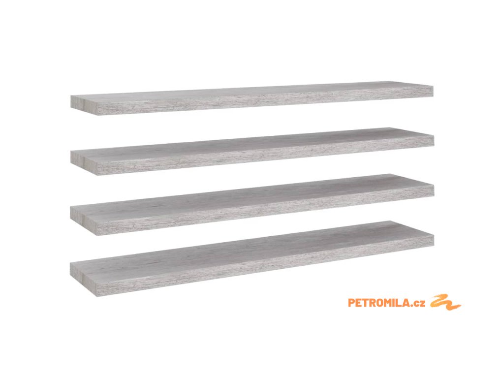 Plovoucí nástěnné police 4 ks betonově šedé 120x23,5x3,8 cm MDF