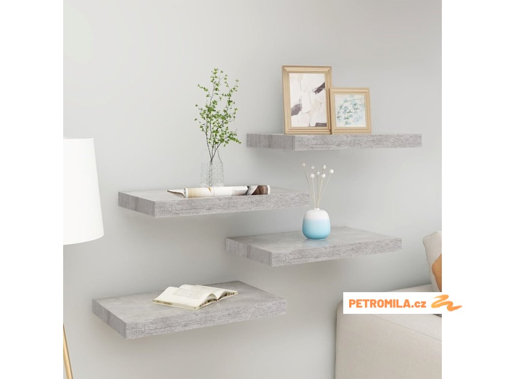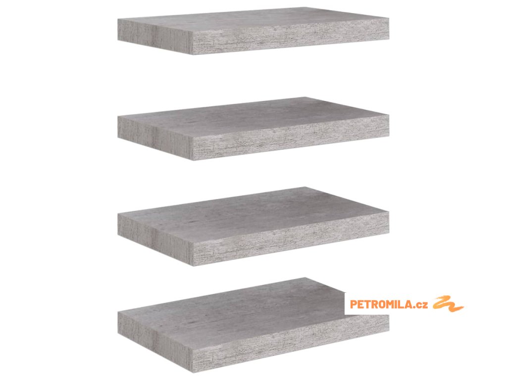 Plovoucí nástěnné police 4 ks betonově šedé 40x23x3,8 cm MDF