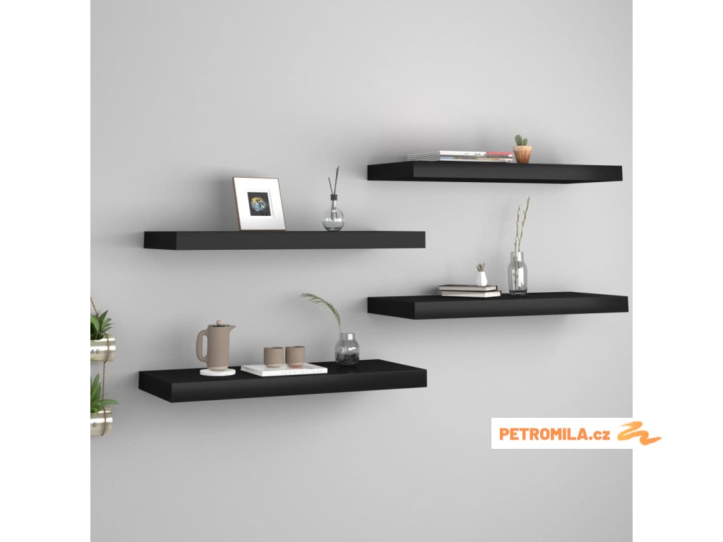 Plovoucí nástěnné police 4 ks černé 60 x 23,5 x 3,8 cm MDF