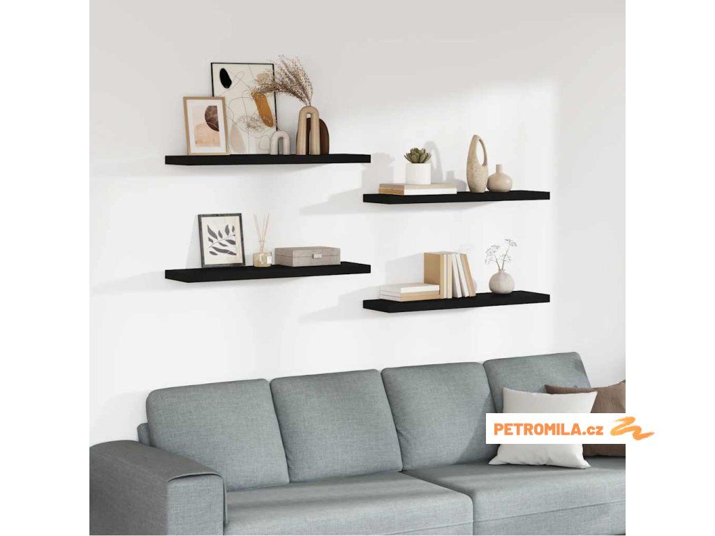 Plovoucí nástěnné police 4 ks černé 90 x 23,5 x 3,8 cm MDF