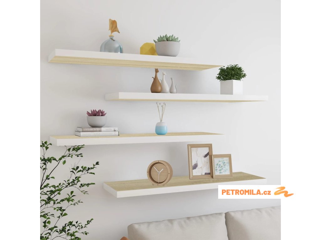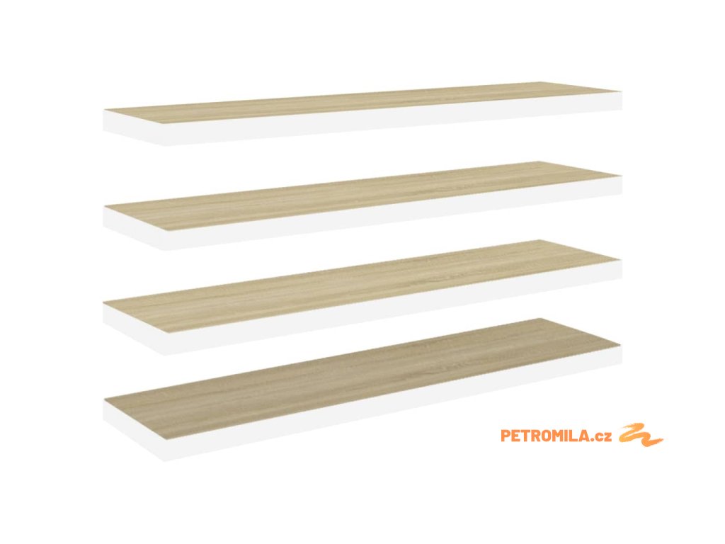 Plovoucí nástěnné police 4 ks dub a bílé 120x23,5x3,8 cm MDF