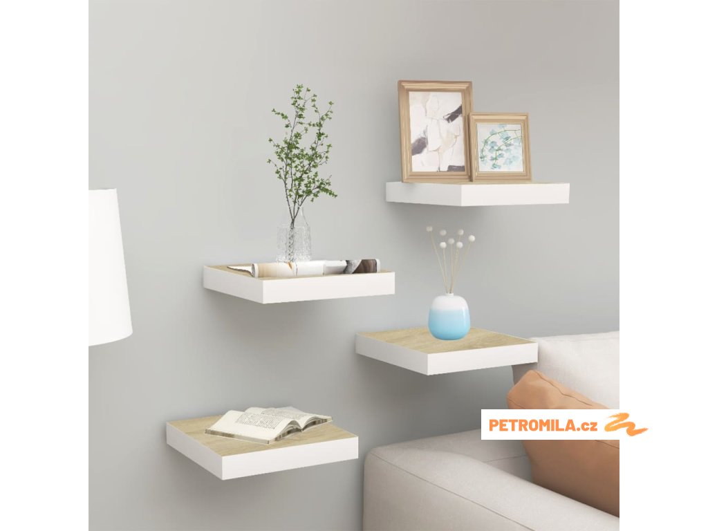Plovoucí nástěnné police 4 ks dub a bílé 23 x 23,5 x 3,8 cm MDF