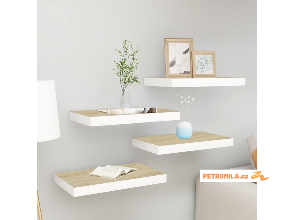 Plovoucí nástěnné police 4 ks dub a bílé 40 x 23 x 3,8 cm MDF