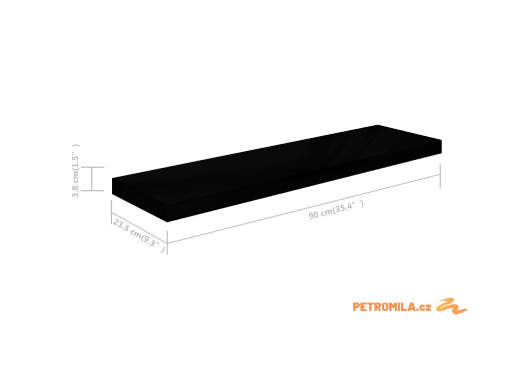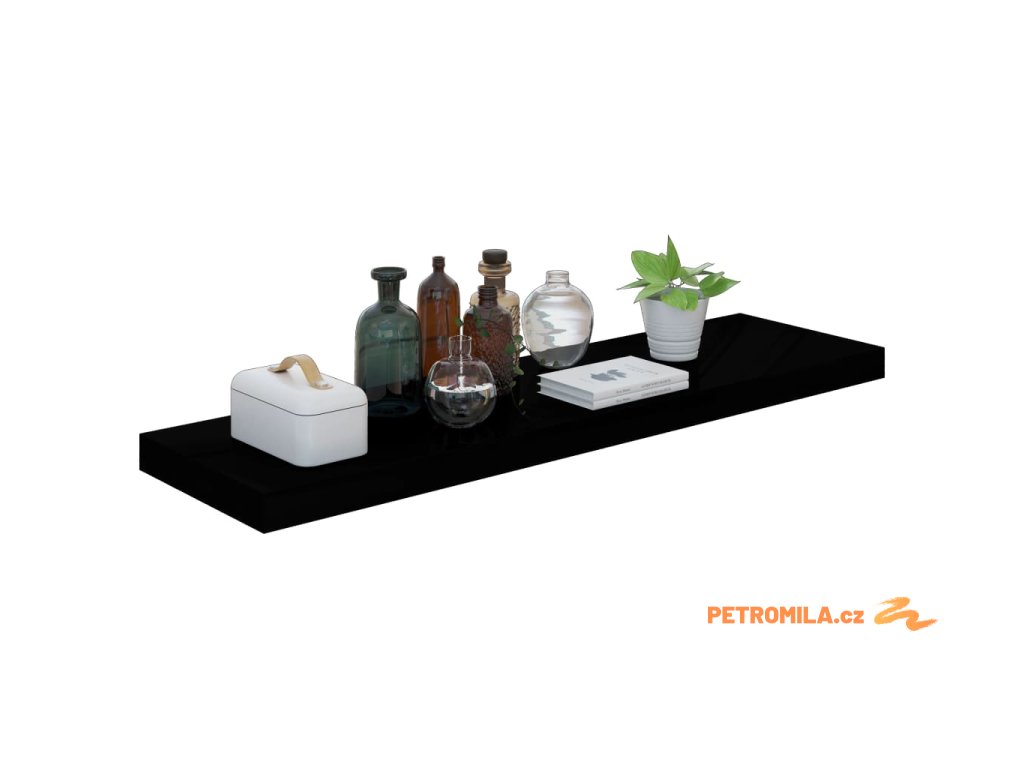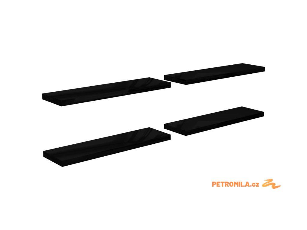 Plovoucí nástěnné police 4 ks lesklé černé 90x23,5x3,8 cm MDF