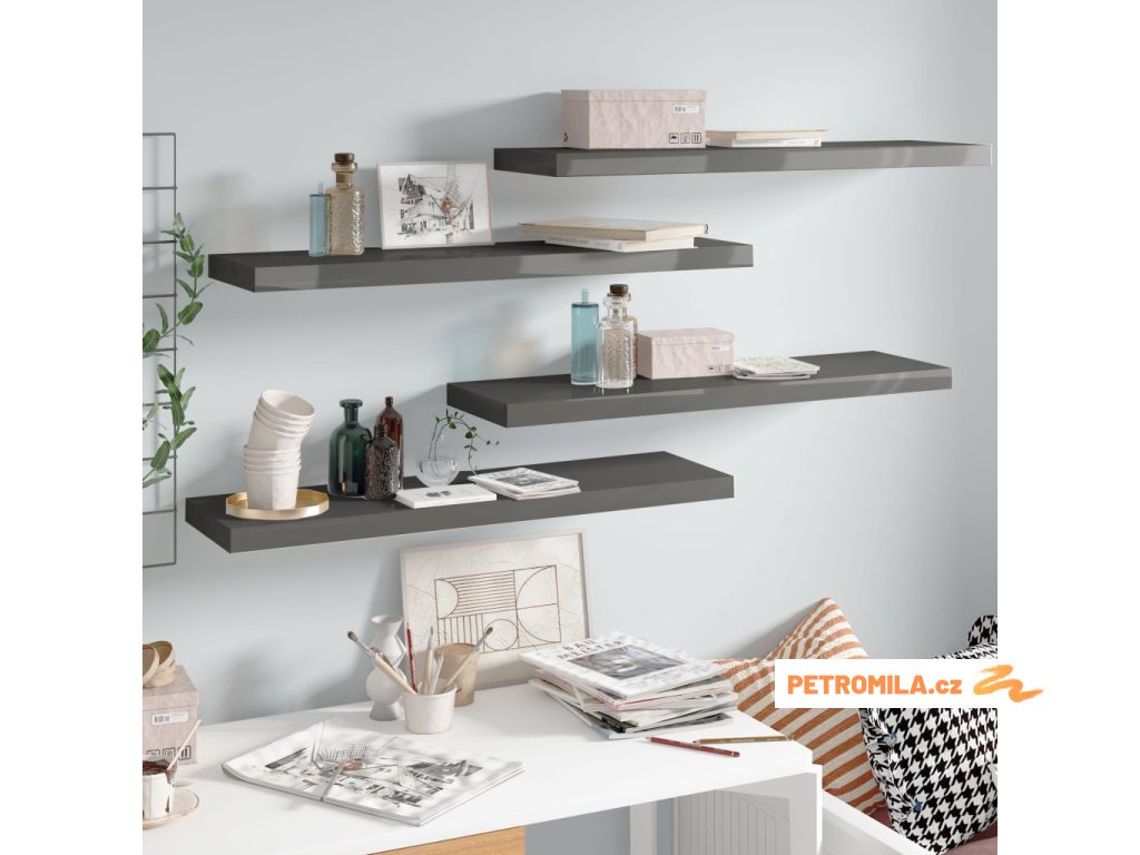 Plovoucí nástěnné police 4 ks lesklé šedé 90x23,5x3,8 cm MDF